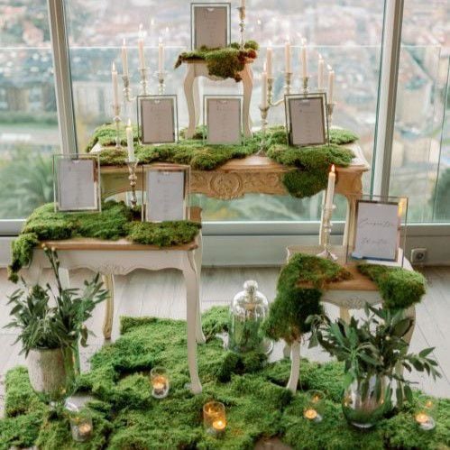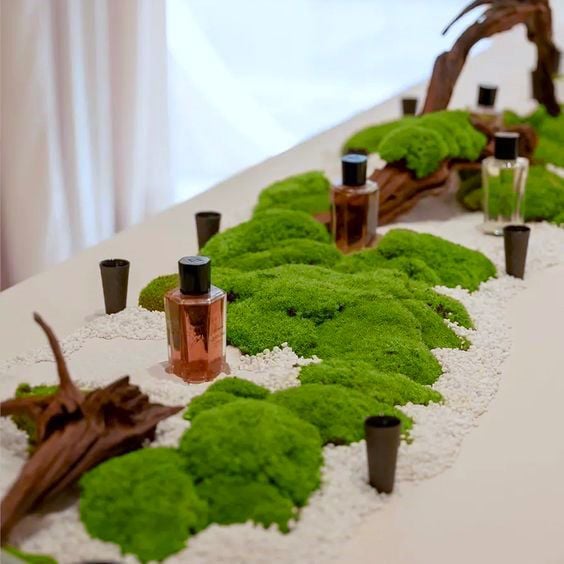 Ngoài ra, bạn cũng có thể sử dụng rêu ngủ đông trang trí các phụ kiện, bàn gallery, kệ, bàn … để tạo nên một bối cảnh đồng nhất, sống động. Kết hợp với các thành phần trang trí khác như cây nhân tạo, hoa, đèn, gương, … bạn hoàn toàn có thể tùy chỉnh theo sở thích, phong cách cá nhân và chủ đề riêng của sự kiện.