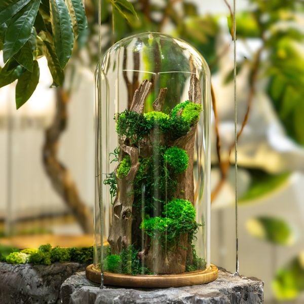 Những chụp terrarium rêu khô là lựa chọn tuyệt vời trong trang trí, trưng bày với đặc tính vốn có của rêu ngủ đông giúp bạn sở hữu một hệ sinh thái mini mà không cần chăm sóc hay tưới nước.