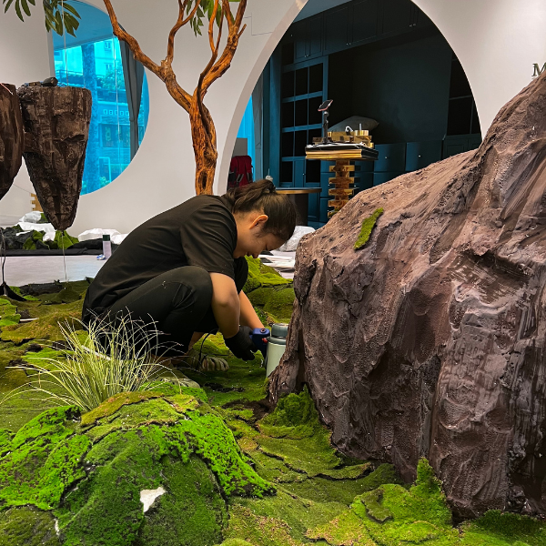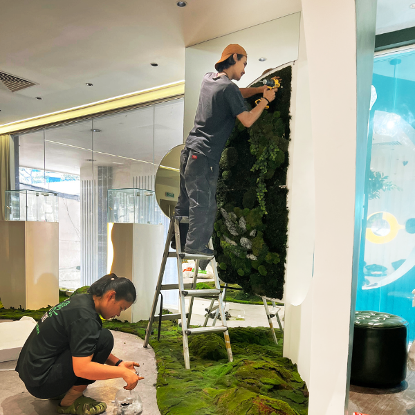 Với các mảng tường Rêu Vĩnh Cửu, ANA gần như thực hiện hoàn toàn tại công xưởng, chỉ vận chuyển lên dự án để lắp đặt và dặm vá, dù thời gian thực hiện rất ngắn nhưng kinh nghiệm dồi dào đã giúp các tác phẩm được lên hình cực kỳ hoàn mỹ!