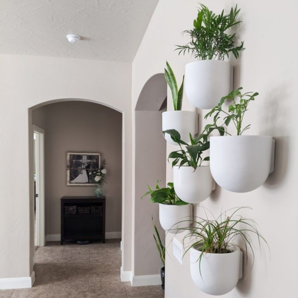 Cây không chỉ cần được đặt trên bệ cửa sổ. Nếu yêu thiên nhiên, bạn có thể tạo nên một bức tường xanh mát bằng cách sử dụng các loại cây treo hoặc chậu cây nhỏ. Hãy sử dụng chậu treo hoặc chậu gắn tường để thêm chút xanh tươi và kết cấu cho bức tường của bạn. Các loại cây như cây thường xuân, cây trầu bà hoặc sen đá đều phù hợp. Việc thêm cây xanh vào không gian sống không chỉ giúp cải thiện không khí mà còn mang lại sự tươi mới và gần gũi với thiên nhiên. ANA cũng cung cấp cho bạn hàng loạt cây trồng nội thất đa dạng đáp ứng mọi nhu cầ trang trí cho không gian sống!