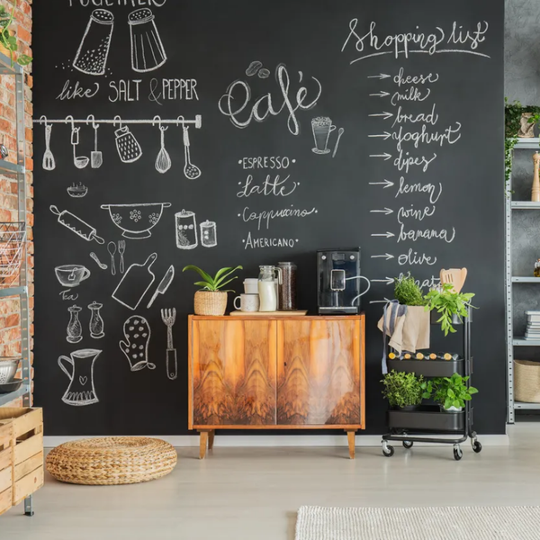 Nếu bạn yêu thích sự sáng tạo, hãy biến một phần của bức tường thành bảng viết hoặc bảng vẽ lớn. Đây sẽ là nơi để bạn ghi chú công việc, vẽ nguệch ngoạc hoặc để trẻ em thỏa sức sáng tạo. Sử dụng bảng trắng hoặc bảng đen dễ viết xóa, giúp không gian trở nên vừa nghệ thuật vừa hữu ích. Nếu bạn cảm thấy thật sự yêu thích hình thức này, bạn có thể nâng cấp lên “cấp độ” cao hơn vói bảng dán tường khổ lớn hoặc sơn toàn bộ bức tường với sơn chuyên dụng có thể vẽ và xóa trực tiếp.