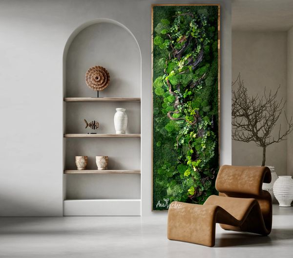 Tranh rêu nội thất là một xu hướng trang trí mới lạ và độc đáo đang rất hot trong thời gian gần đây. Sử dụng rêu tự nhiên 100% mang hơi thở thiên nhiên vào không gian sống của bạn, tranh rêu đã qua quá trình xử lý bảo tồn ngủ đông, giúp giữ được vẻ tươi tắn mà không cần phải chăm sóc hay tưới nước. Độ bền của tranh rêu lên đến 10 năm, thích hợp để trang trí nội thất, tạo không gian gần gũi với thiên nhiên mà vẫn rất sang trọng và hiện đại. Tranh rêu đặc biệt phù hợp cho những ai yêu thích thiên nhiên nhưng có quỹ thời gian hạn chế. ANA Garden hiện cung cấp các sản phẩm tranh rêu nội thất với nhiều mẫu mã và kích thước khác nhau, phù hợp với nhu cầu và phong cách của từng không gian.