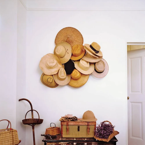 Nếu bạn có một bộ sưu tập mũ yêu thích đang bỏ quên trong tủ quần áo của mình, đừng ngần ngại trưng bày chúng lên tường! Nếu có một số điểm tương đồng giữa chúng chẳng hạn như có kết cấu dệt tương tự hoặc hình dạng nhất định, thì có lẽ bạn muốn trưng bày chúng phía trên tủ quần áo trong phòng ngủ của mình. Hoặc những chiếc mũ độc đáo trông khác nhau nhưng khi được sắp xếp sáng tạo sẽ trở thành một phần của không gian nghệ thuật. Bạn có thể chọn treo chúng theo hình dạng hoặc bố trí theo màu sắc, tạo nên một bức tranh thời trang đầy cá tính.