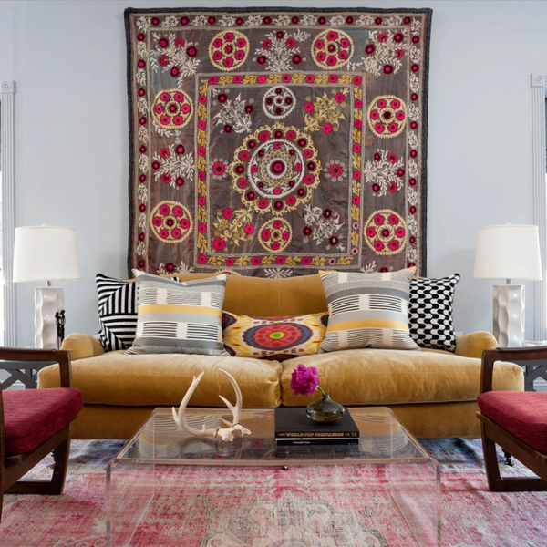 Một tấm thảm đẹp có thể gắn kết toàn bộ diện mạo của một căn phòng. Không chí tuyệt vời trên sàn nhà, chúng cũng có thể có chức năng kép như đồ trang trí tường đầy cá tính. Những tấm thảm treo có thể được sử dụng cho nhiều phong cách trang trí khác nhau như phong cách Boho, Scandinavian, vintage, hoặc hiện đại. Chọn những tấm thảm có hoa văn hoặc họa tiết độc đáo để tạo điểm nhấn thị giác mạnh mẽ. Ngoài việc trang trí, thảm treo còn giúp tạo thêm chiều sâu và làm cho không gian trở nên mềm mại hơn.