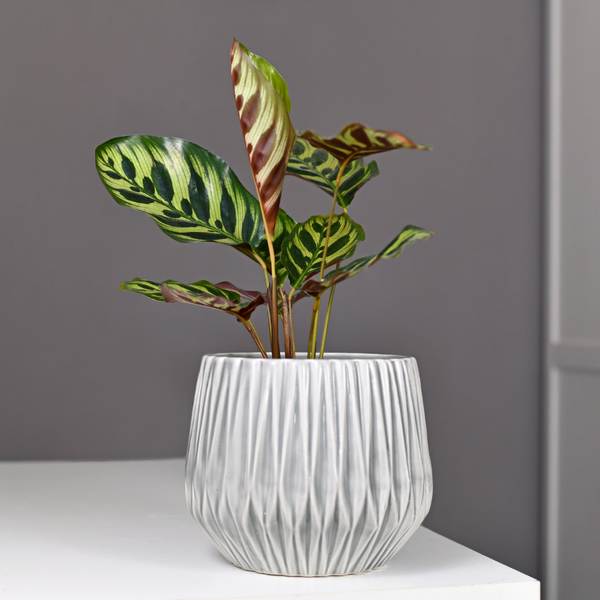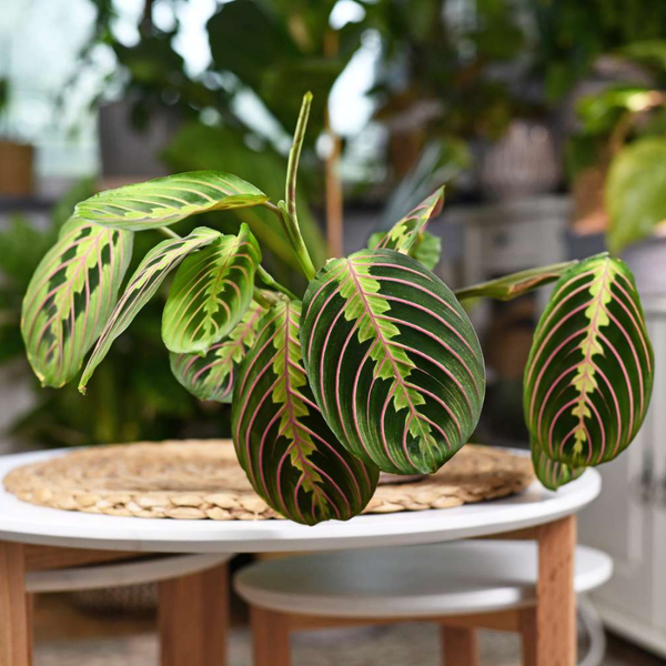 Cây Đuôi Công (Calathea) có những chiếc lá với hoa văn độc đáo và màu sắc rực rỡ. Từ khoảng 4 tháng tuổi khi trẻ bắt đầu nhìn thấy các màu sắc khác nhau, những cây này không chỉ kích thích sự tò mò mà còn thu hút sự chú ý của trẻ. Đây là loại cây lành tính, không chứa độc tố, nên rất an toàn khi trẻ tiếp xúc. Cây còn có khả năng lọc sạch không khí và điều hòa độ ẩm, giúp tạo ra môi trường sống trong lành. Đặc biệt, với sự phong phú về màu sắc và kiểu dáng của lá, cây Đuôi Công cũng giúp kích thích sự phát triển thị giác của trẻ nhỏ.
