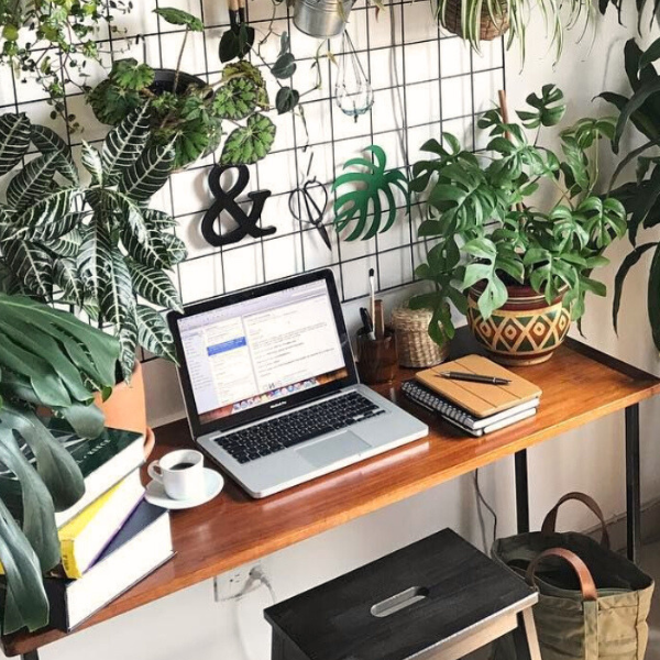 - Cây xanh văn phòng cũng là gợi ý hay cho vị trí này, giúp hút bớt bức xạ máy tính, xoa dịu giác quan và giải tỏa căng thẳng. Những loại cây nhỏ phù hợp với không gian này như Lá May Mắn, Củ Bình Vôi, Sống Đời, Lưỡi Hổ, Trầu Bà,….