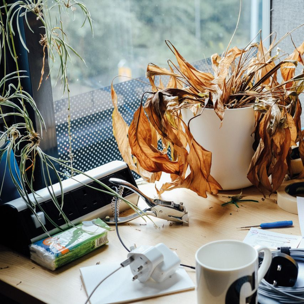 - Lý do: Cây xanh khô héo không chỉ là dấu hiệu của sự lơ là và thiếu chăm sóc mà còn mang lại năng lượng tiêu cực, làm giảm sức sống và sự hứng khởi trong công việc.