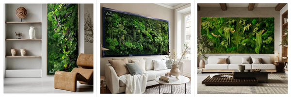 Việc ứng dụng rêu Vĩnh Cửu vào trang trí nội thất giúp tạo ra các tác phẩm nghệ thuật sống động, các bức tường xanh, trang trí không gian sống và làm việc mà không cần lo lắng về việc chăm sóc thường xuyên như tưới nước hay ánh sáng.