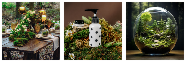 - Chọn (hoặc không) các nguyên liệu tự nhiên để kết hợp với rêu như: gỗ lủa, cành cây, vỏ vây, hoa khô, cây plastic,...